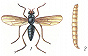 МОРКО́ВНАЯ МУ́ХА (Psila rosae), насекомое сем. мух-псилид. Опасный вредитель моркови, пастернака, петрушки и др. растений сем. зонтичных. Распространена в Зап. Европе, Сев. Америке, Новой Зеландии; в РФ – широко. Тело (длина 4–5 мм) блестящее, чёрного цвета с зеленоватым отливом; голова и ноги желтоватые. Личинка (длина до 7 мм) безногая, бледно-жёлтая, блестящая. Яйцо (длина 0,6 мм) овальное, белое. В году 2 поколения. Зимуют куколки в ложных коконах (пупариях) в почве на глубине 4–10 см. Весной вылет мух совпадает с цветением яблони и рябины. Самка откладывает до 120 яиц, располагая их около всходов растений. Яйцо развивается 8–12 сут. Личинки внедряются в корнеплод и в течение 20–25 сут питаются, прогрызая в нём ходы, а затем окукливаются в почве. Через 10–14 сут вылетают мухи 2-го поколения. Повреждённые корнеплоды непригодны к употреблению, быстро загнивают. Листья моркови, повреждённой М. м., приобретают фиолетово-красный оттенок, затем желтеют и засыхают. Меры защиты: глубокая зяблевая вспашка; оптимально ранний посев зонтичных культур; применение укрывных нетканых материалов и инсектицидов и др.