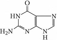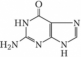 ГУАНИ́Н (2-амино-6(1H)-оксопурин), пуриновое основание. Входит в состав нуклеиновых кислот, нуклеозидов (гуанозина и дезоксигуанозина) и гуаниновых нуклеотидов (см. Гуанозинфосфорные кислоты). В состав РНК помимо Г. в небольшом количестве входят его метилированные производные (т. н. минорные основания) – 1-метилгуанин, N2-метилгуанин, N2-диметилгуанин и 7-метилгуанин. У разл. организмов Г. встречается в свободном состоянии: составляет осн. массу экскрементов птиц и пауков (у них Г. конечный продукт азотистого обмена), обусловливает перламутровый блеск чешуи рыб и раковин моллюсков. Он является структурным компонентом ряда коферментов, используется при биосинтезе рибофлавина и фолиевой кислоты. Под действием фермента гуаниндезаминазы преобразуется в ксантин. В организме человека (в печени, тонком кишечнике и почках) Г., образующийся в результате метаболич. распада нуклеиновых кислот, как правило, повторно используется при синтезе гуаниновых нуклеотидов. В составе нуклеиновых кислот образует комплементарную пару с цитозином (G–C) и неканоническую пару с урацилом (G–U) – в структуре РНК. У человека богатые гуаниновыми нуклеотидами последовательности, обнаруженные в теломерной части ДНК, способны образовывать четырёхцепочечные структуры (G-квадруплексы), препятствующие работе ферментов, регулирующих деление клеток и экспрессию генов. Под действием окислителей или при облучении Г. превращается в 7,8-дигидро-8-оксогуанин, накопление которого приводит к преждевременному старению, онкологическим и др. заболеваниям. См. также Азотистые основания.