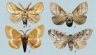КОКОНОПРЯ́ДЫ (Lasiocampidae), семейство разноусых бабочек. Тело массивное, покрыто волосковидными чешуйками; крылья широкие, окраска обычно желтоватая, серая или коричневая с рисунком из полос и пятен. Размах крыльев до 10 см. Усики самцов перистые. Самки крупнее и светлее самцов. Взрослые особи не питаются (хоботок редуцирован). Гусеницы К. покрыты густыми, длинными волосками; питаются листьями разл. травянистых и древесных растений. Окукливание в плотных, продолговатых коконах (отсюда назв.) из шёлковых нитей (поэтому часто К. называют шелкопрядами). Ок. 1000 видов. Распространены широко, наиболее разнообразны в тропиках. В России ок. 30 видов. Многие К. повреждают деревья и кустарники, в т. ч. сосновый К., или сосновый шелкопряд, сибирский К., или сибирский шелкопряд, кольчатый К., или кольчатый шелкопряд.