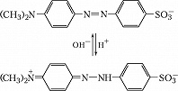МЕТИ́ЛОВЫЙ ОРА́НЖЕВЫЙ (метилоранж), кислотный азокраситель, натриевая соль 4′ -диметиламиноазобензол-4-сульфоновой кислоты; оранжево-жёлтое кристаллич. вещество, малорастворимое в воде, практически нерастворимое в спирте. Как краситель не используется вследствие высокой чувствительности к кислотам. М. о. – важнейший кислотно-оснóвный химич. индикатор; изменение окраски в интервале значений рН от 3,1 (красно-оранжевая) до $\ce{pH}$ 4,4 (жёлтая) обусловлено азо-гидразонной таутомерией: