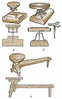 ГОНЧА́РНЫЙ КРУГ, устройство для создания из пластичного сырья (гл. обр. из глины) посуды и др. изделий в результате вращения, которое обеспечивают вертикальный шип (ось) и подшипник. Различаются карусельные (рабочий диск вращается вокруг неподвижной оси; рис. а, в) и волчковые (рабочий диск вращается вместе с осью; рис. б) конструкции Г. к. По способам приведения в движение Г. к. бывают ножные (пальцевые, пяточные, педальные), ручные (пальцевые, палочные, ременные), с электрическим приводом (он может управляться реостатом, что позволяет регулировать скорость вращения).