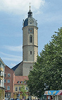 В центре города: на Рыночной пл. – Ратуша (1377–80, башня – 1755) и памятник саксонскому курфюрсту Иоганну Фридриху Великодушному (1858); готическая церковь Св. Михаила (кон. 14 – сер. 16 вв., восстановлена после 1945), здание Университета им. Ф. Шиллера (1905–08; высотное здание – 1967–72; см. Йенский университет).