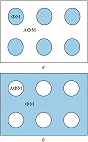 КМС может быть объяснено присутствием в невырожденных магнитных полупроводниках особых магнитно-примесных состояний – примесных ферронов (см. Магнитный полярон). Вырожденный антиферромагнитный полупроводник из-за сильного s–d-обмена (см. Косвенное обменное взаимодействие) разбивается на области с ферромагнитным порядком, в которых сосредоточены носители заряда (электроны или дырки), и области с антиферромагнитным порядком, в которых носители заряда отсутствуют (фазовое разделение). Вырожденный ферромагнитный полупроводник в окрестности темп-ры Кюри ТС содержит ферромагнитные области, в которых сосредоточены носители заряда, и парамагнитные области, в которых они отсутствуют. При невысоком уровне легирования изолированные друг от друга ферромагнитные области (ферромагнитные капли) располагаются внутри изолирующей антиферромагнитной матрицы в антиферромагнитных полупроводниках (рис. 1, а) или в изолирующей парамагнитной матрице в ферромагнитных полупроводниках. При более высоком уровне легирования, наоборот, изолирующие антиферромагнитные или парамагнитные области располагаются внутри проводящей ферромагнитной матрицы (рис. 1, б). В первом случае при наложении магнитного поля происходит увеличение радиусов ферромагнитных областей и упорядочение их магнитных моментов, что облегчает туннелирование носителей заряда между этими областями. Кроме того, магнитное поле имеет тенденцию к разрушению ферромагнитных областей. Таким образом, КМС в магнитных полупроводниках с не слишком высоким уровнем легирования вызвано в осн. увеличением концентрации носителей заряда и является отрицательным. Однако при темп-ре немного выше ТС, когда намагниченность около примесей много меньше предельной, при наложении внешнего магнитного поля подвижность носителей заряда уменьшается, а их концентрация в зависимости от величины магнитного поля может как уменьшаться, так и увеличиваться, следовательно, может наблюдаться как отрицательное, так и положительное М. с изменением знака при некотором значении напряжённости поля, как, напр., в ферромагнитном легированном хромхалькогениде Cd0,987In0,013Cr2Se4 (рис. 2). Изменение подвижности носителей заряда под действием магнитного поля значительно слабее влияет на величину М., чем изменение их концентрации.