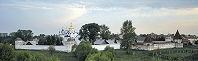 Живописные архит. ансамбли представляют собой рус. монастыри. При их основании и расширении учитывались расположение (при слиянии рек, у озера, на острове и т. д.), природное окружение, характер рельефа, что органично связывало комплекс с ландшафтом. Оборонит. функции М. определили мощь крепостных стен с башнями (Троице-Сергиева лавра, Кирилло-Белозерский монастырь). Построенные вокруг городов или в их черте рус. М. образовывали оборонит. линию и являлись доминантами гор. планировки (Донской монастырь, Новодевичий монастырь в Москве и др.). Архит. формы рус. М. до сер. 16 в. были строгими, лаконичными, а к кон. 17 в. обогатились красочным узорочьем. В общежительных М. обязательным элементом была трапезная (первая каменная известна в Киево-Печерском мон., 12 в.), в комплекс которой с 16 в. стали включать храм. В городских М. 17 в. над воротами иногда ставили колокольню. Проём главных (Святых) ворот ориентировался на один из входов в собор.