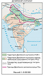 Границы Д. с. неоднократно менялись, его территория не имела регулярного адм. деления. В 13 в. Д. с. охватывал бассейны рек Инд и Ганг (часто за исключением Бенгалии). При Ала-ад-Дине Хилджи (правил в 1296–1316) Д. с. включал почти всю Индию и сохранялся как общеиндийское гос-во в первые годы правления Мухаммеда Туглака (правил в 1325–51). В последующий период его территория вновь сузилась до долины Ганга и области Панджаб (Пенджаб). В 1389 Д. с. был разгромлен Тимуром и уже не смог вернуть себе былое могущество. Власть султанов династий Сайидов и Лоди распространялась лишь на Доаб (междуречье Ганга и Джамны), а иногда только на окрестности Дели. На развалинах Д. с. возникли Бахманийский, Джаунпурский, Гуджаратский султанаты, Малва, княжества Раджпутаны. В 1526 Д. с. был завоёван Бабуром, основавшим династию Великих Моголов.